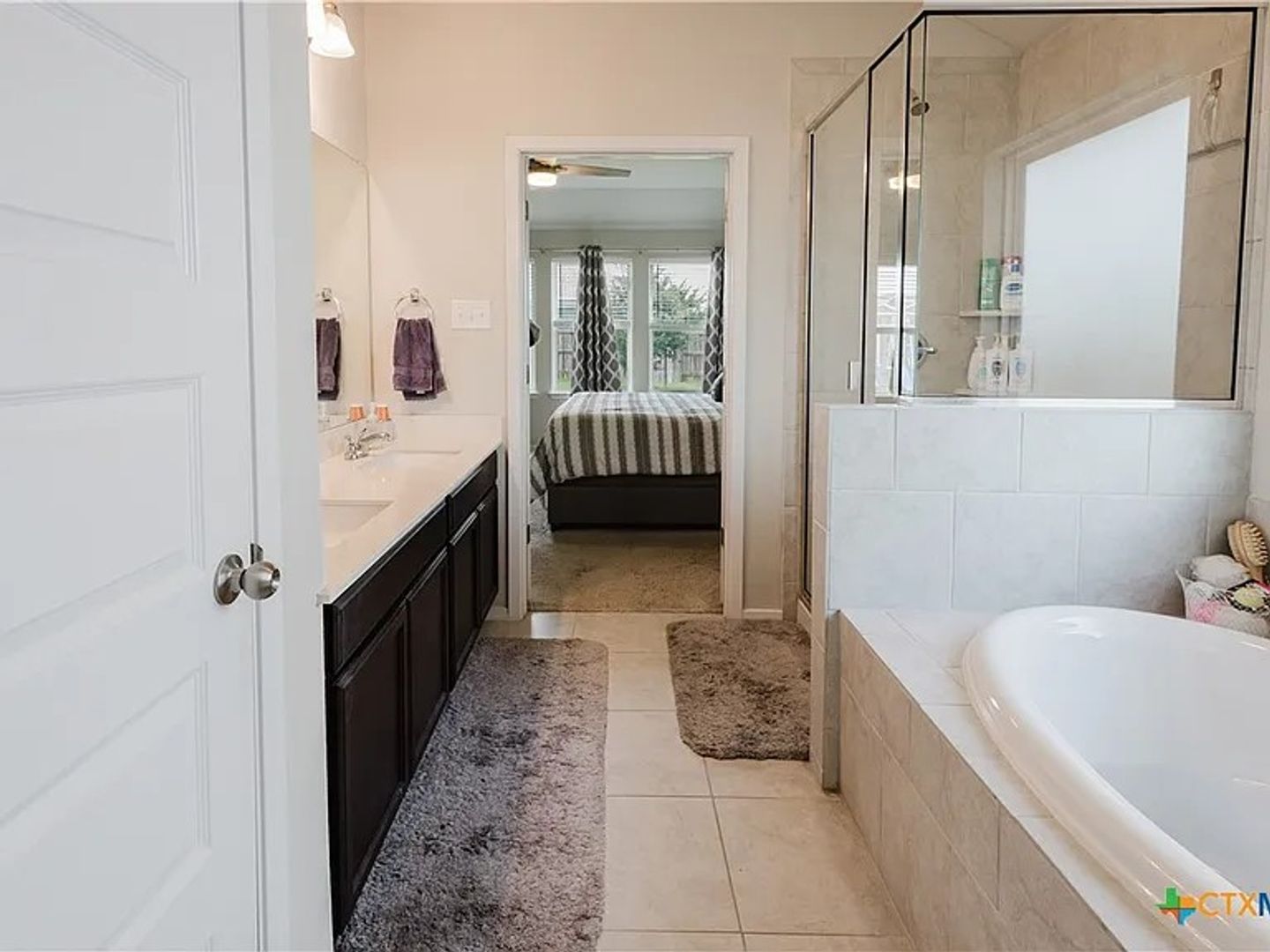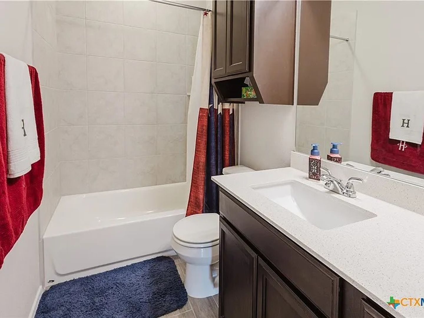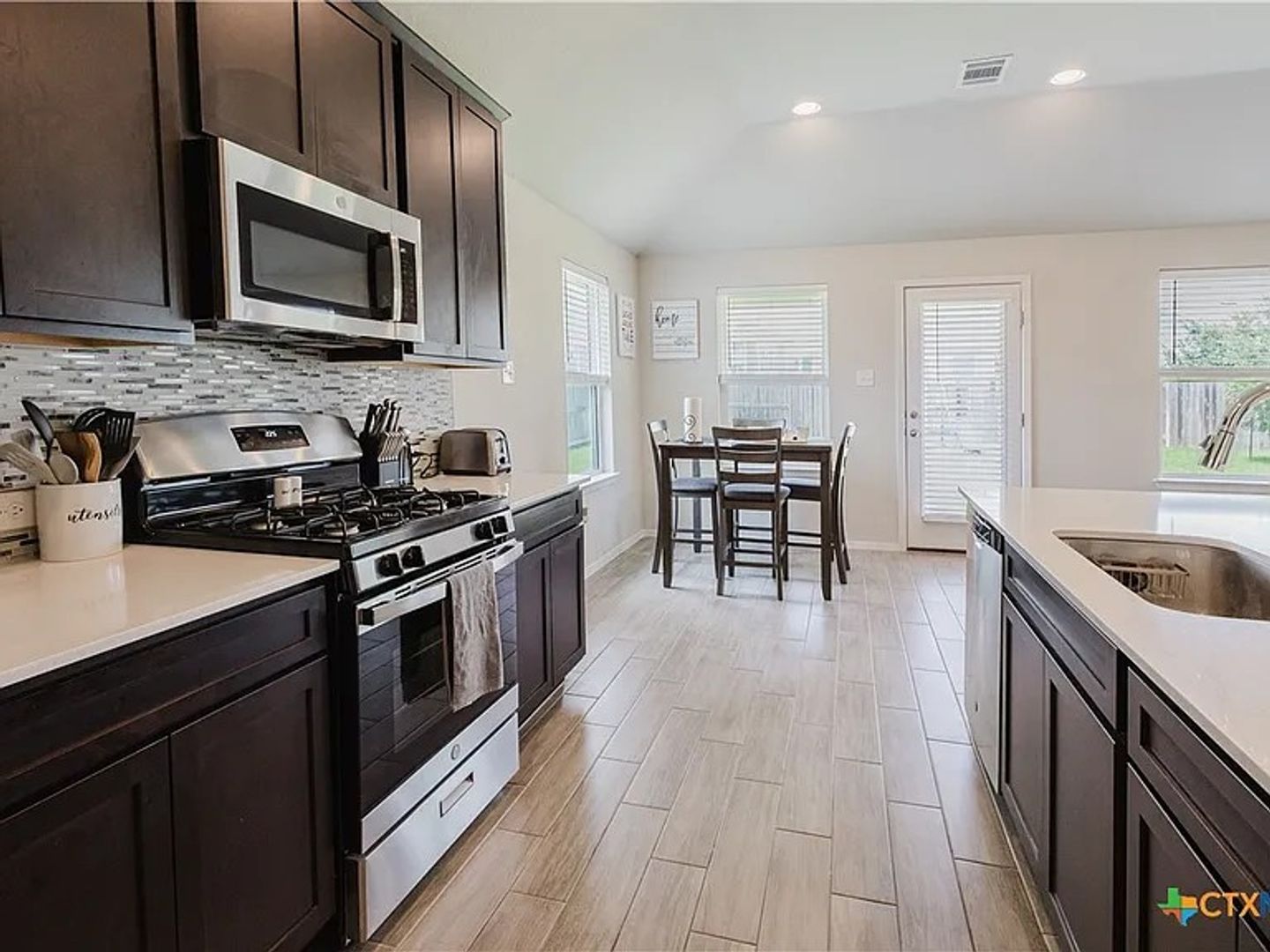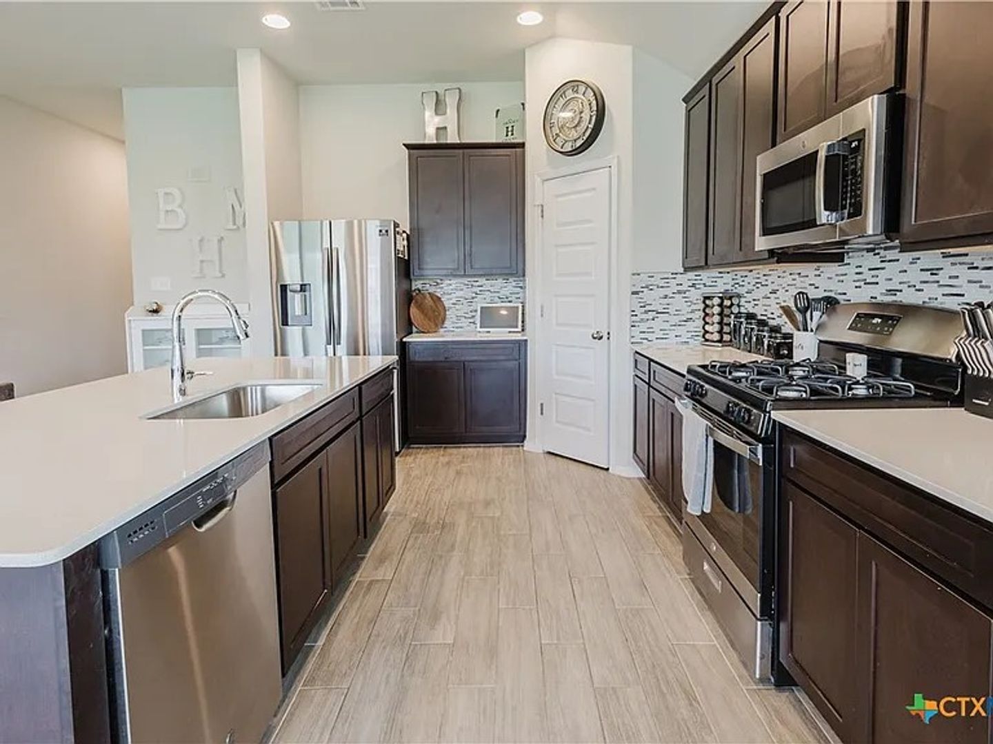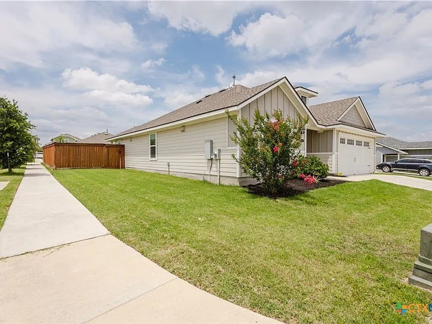 Welcome to 228 Sage Meadows Drive in San Marcos, Texas—a charming 3-bedroom, 2-bath home built in 2020 and nestled in the desirable Trace subdivision. This single-story home features an open-concept layout with high ceilings, wood-look tile floors, and a modern kitchen with quartz countertops and stainless steel appliances. The spacious primary suite includes a garden tub, separate shower, and walk-in closet. Enjoy outdoor living with a covered patio, private fenced backyard, and full sprinkler system. The community offers a clubhouse and pool, and the home is conveniently located near I-35, schools, and shopping. With thoughtful design and great amenities, this move-in-ready home is a perfect blend of comfort and style.